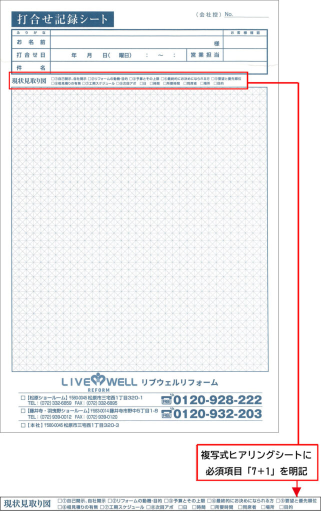 コンサルタントからアドバイスを受け、聞き取り時に欠かせない「7+1項目」を徹底することに。これを採用する前の2018年度のリフォーム売上高は4億円だったが、前期は5億6000万円まで伸びている。新規顧客の成約率も40%台から60%超にアップした。
